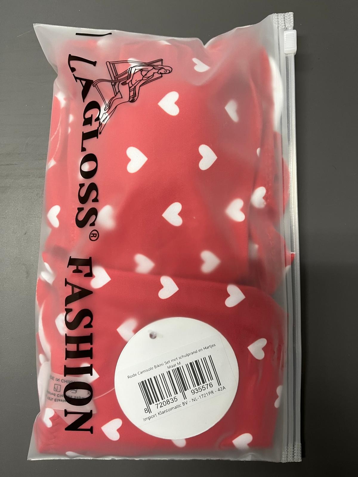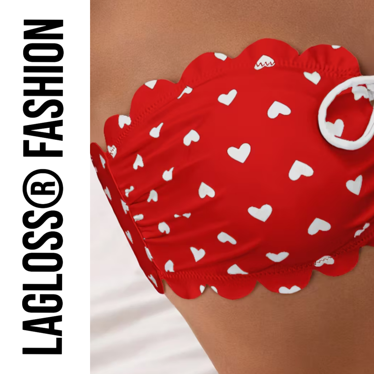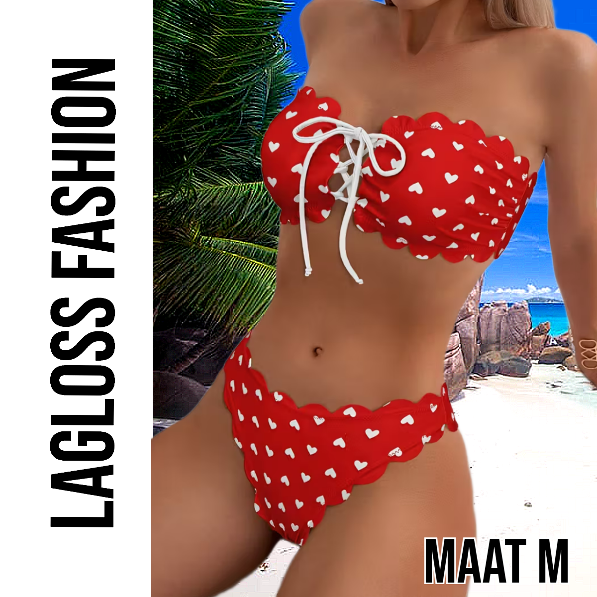 LaGloss® Rode Camisole Bikini Set met schulprand en Hartjes – Tweedelige Dames Bikini – Maat M