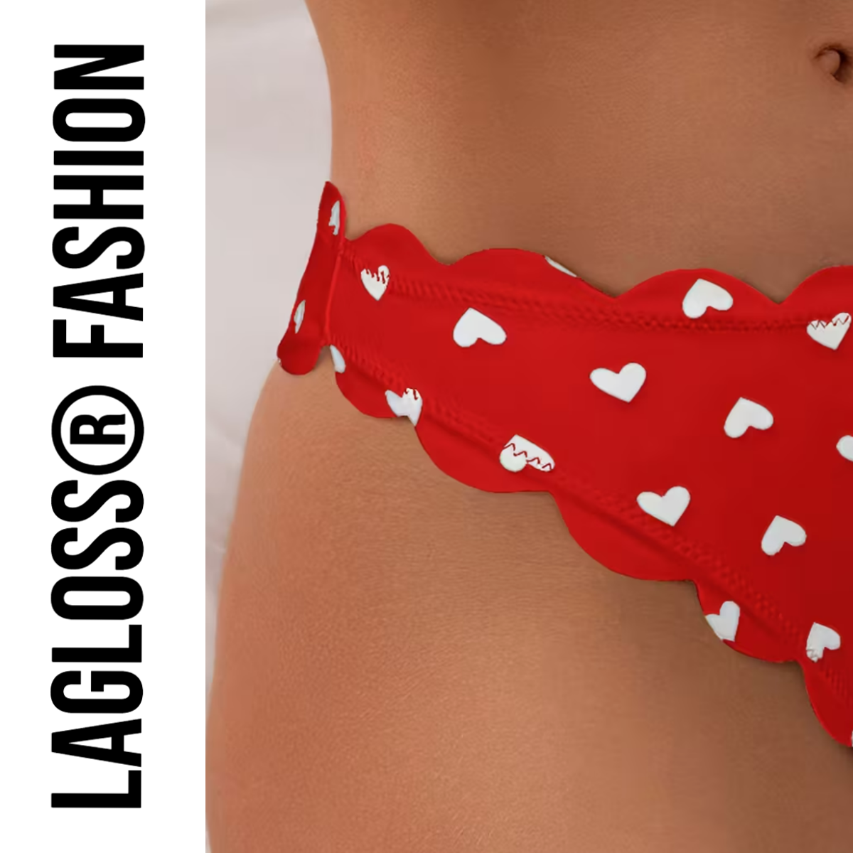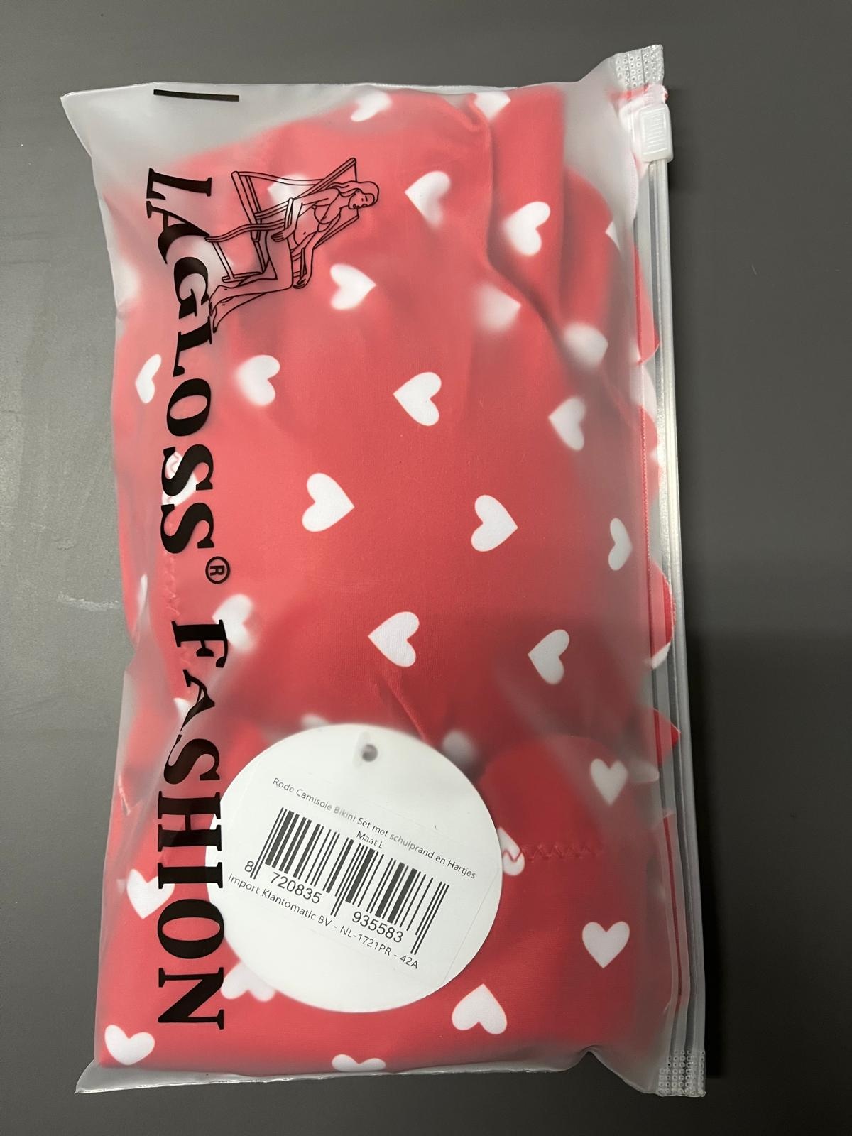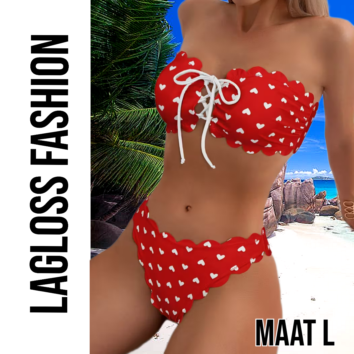 LaGloss® Rde Camisole Bikini Set met schulprand en Hartjes – Tweedelige Dames Bikini – Maat L