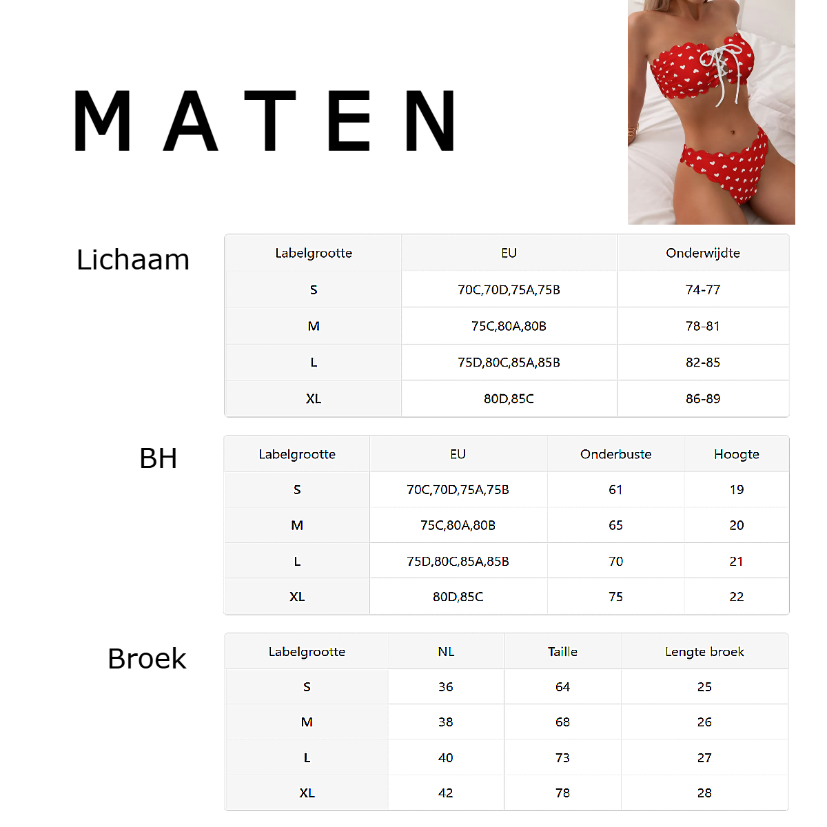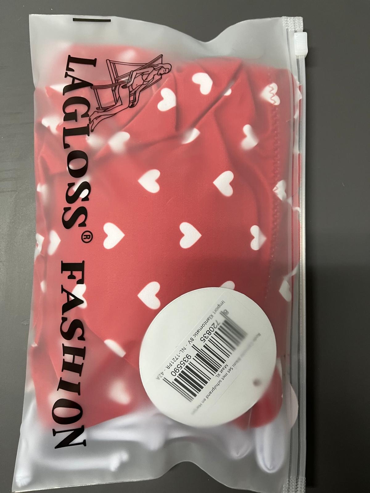 LaGloss® Rde Camisole Bikini Set met schulprand en Hartjes – Tweedelige Dames Bikini – Maat XL