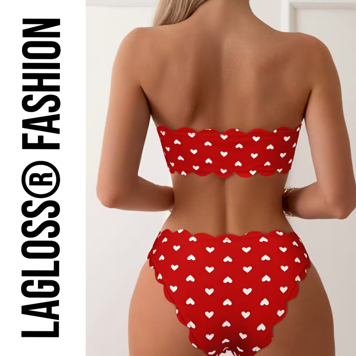 De LaGloss® Tweedelige Rode Camisole Bikini Set met schulprand en Hartjes is een vrolijke en vrouwelijke keuze voor zonnige dagen aan het strand, bij het zwembad of tijdens uw vakantie. De combinatie van de rode kleur met speelse hartjes en een decoratieve schulprand geeft deze bikini een frisse en verzorgde uitstraling die direct opvalt, zonder overdreven te zijn.