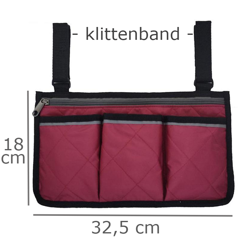 Allernieuwste.nl® Rolstoel Armsteun Opbergtas - Looprek Rolstoeltas met 4 Opbergvakken - 32.5 x 18 cm - Kleur Bordeaux ROOD
