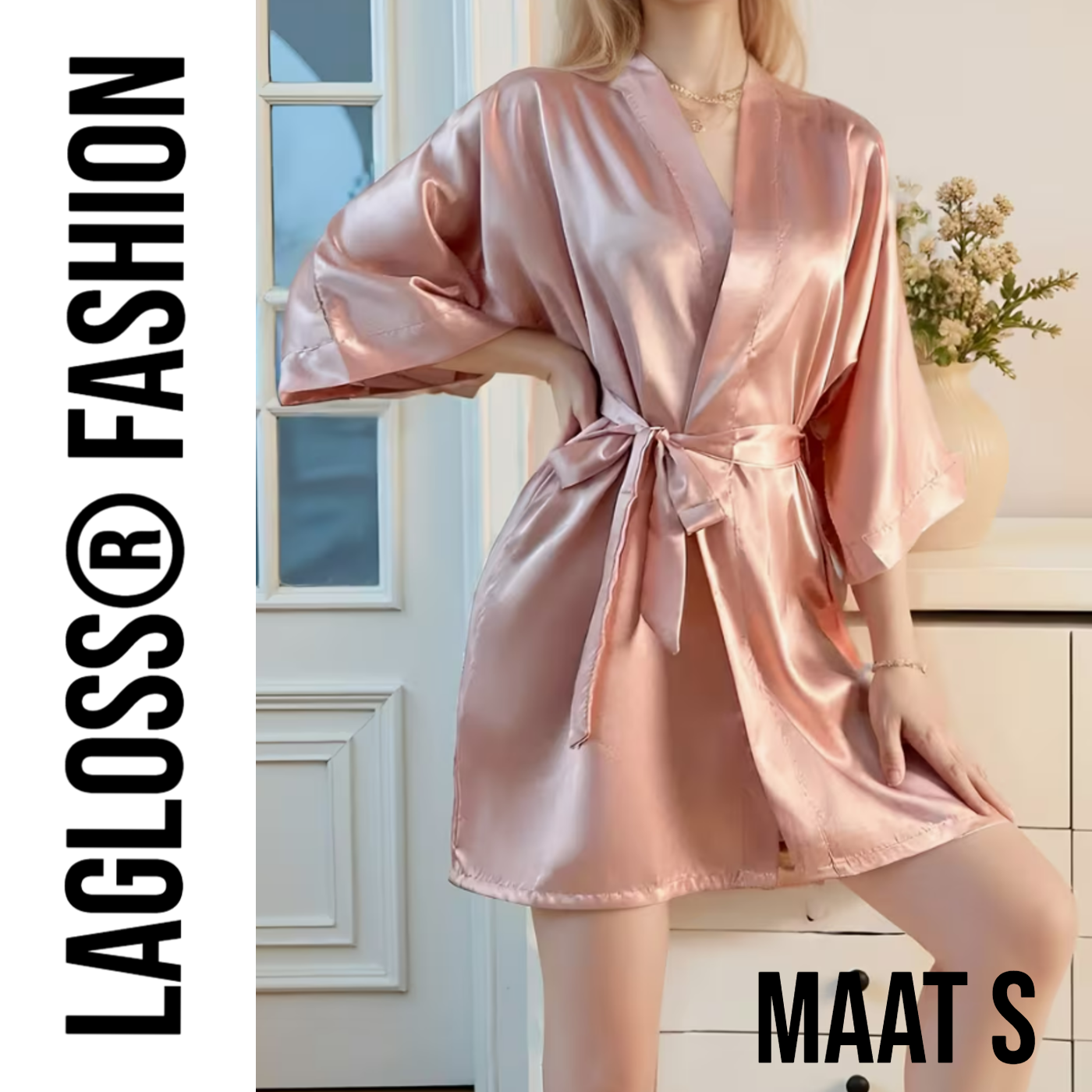 LaGloss® Roze Dames Badjas – Elegante V-Hals met 3/4 Mouwen – Nachtkleding – Maat S