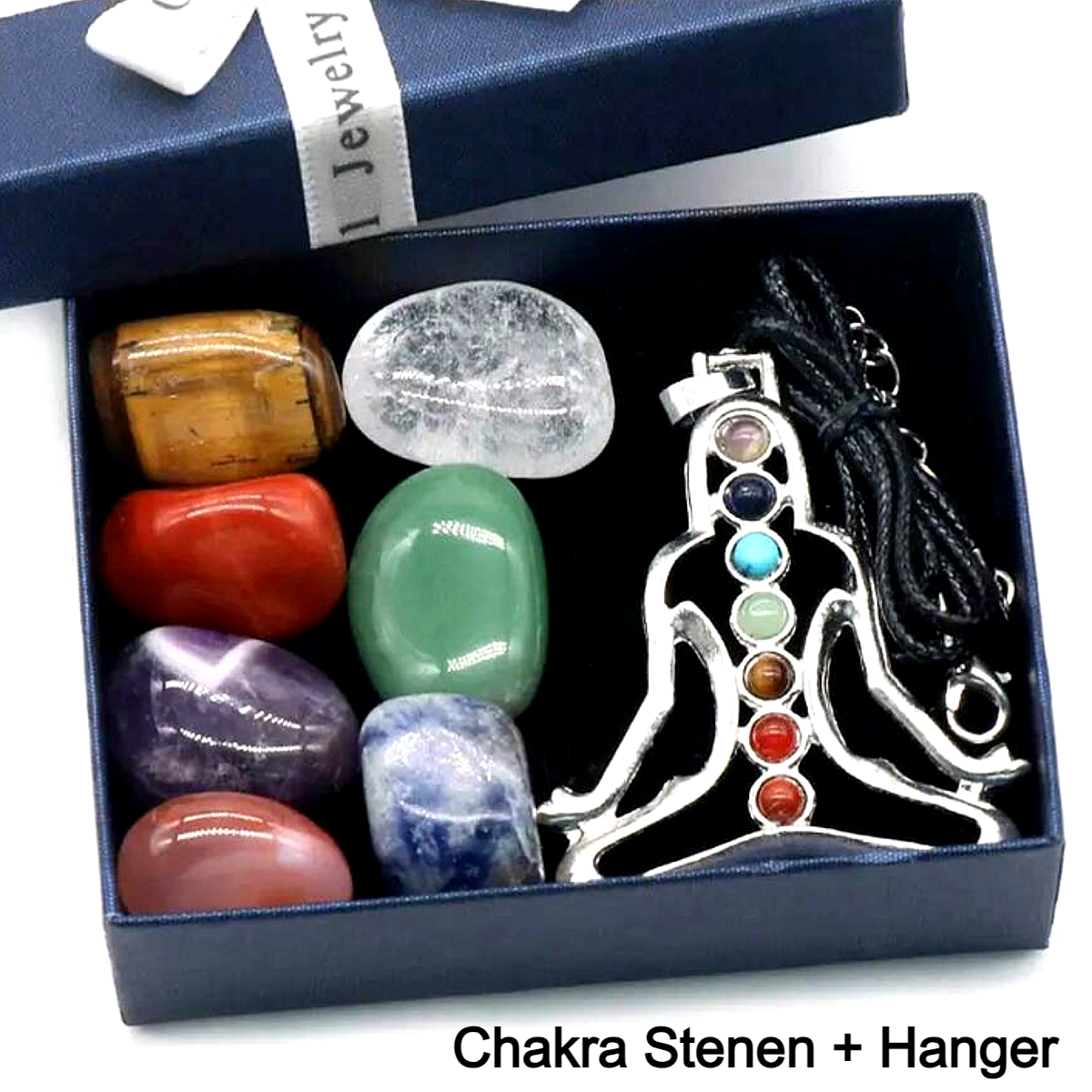 - Set van 7 chakra stenen + ketting met chakra hanger