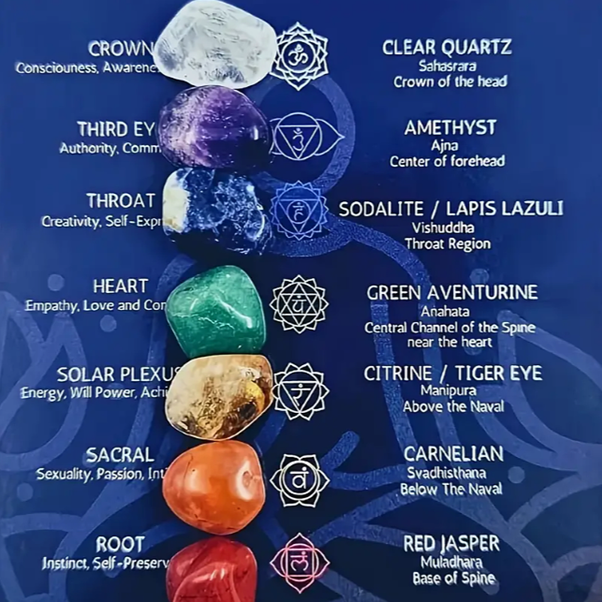 Elke steen in deze set correspondeert met één van de zeven chakra's, wat helpt om energieën te balanceren en blokkades op te heffen. De bijgeleverde ketting met chakra hanger is ideaal om te dragen tijdens meditatie of dagelijks gebruik.