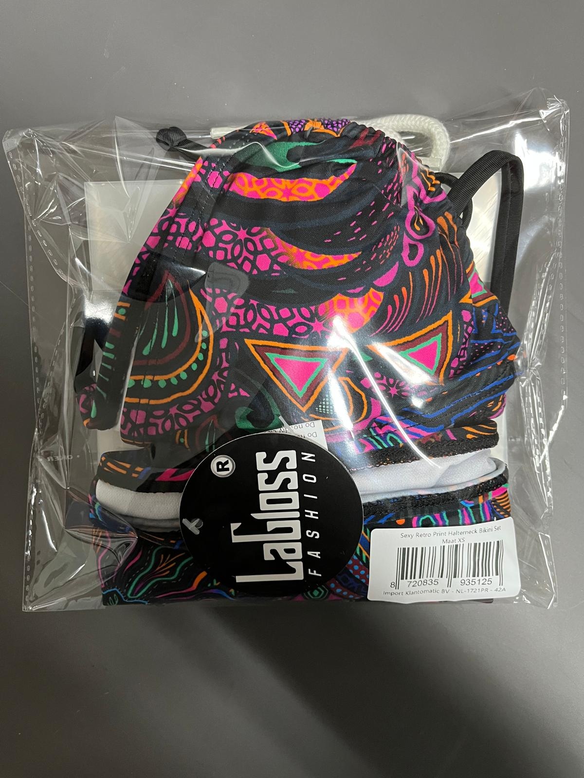LaGloss® Sexy Retro Print Halterneck Bikini Set met Bindsluiting & Hoge Stretch - Maat XS