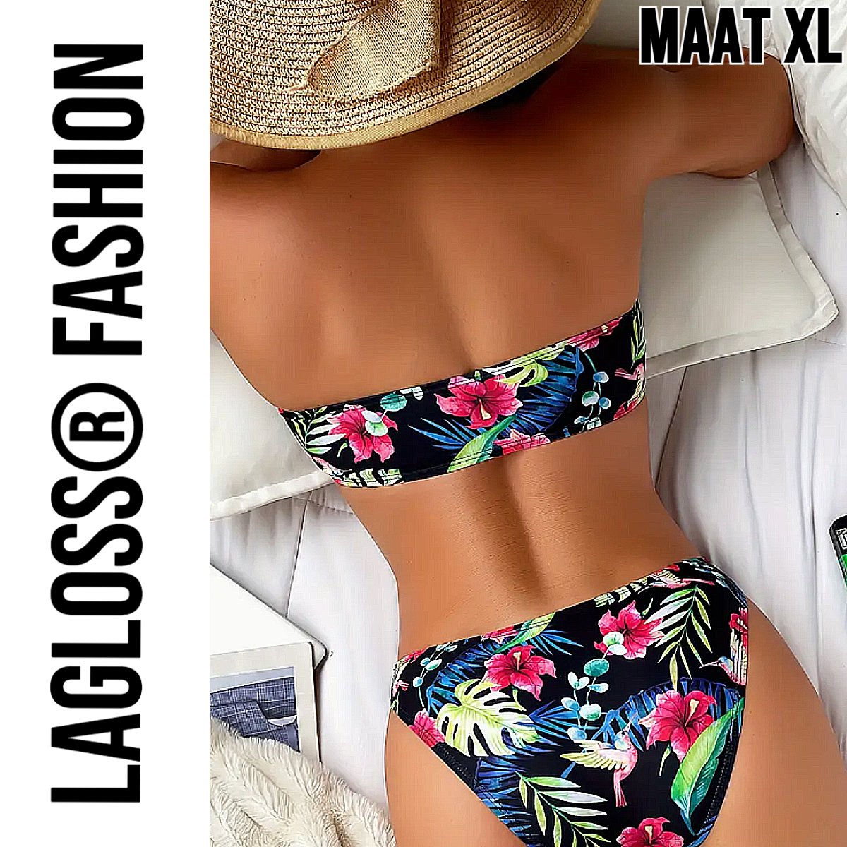 LaGloss® Strapless Bikini Tropische Print Maat XL – 2-delige Bikini - Zomer Strandkleding