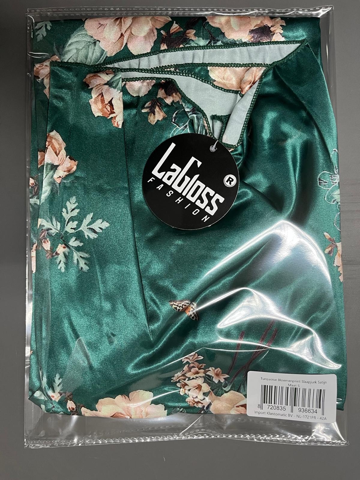LaGloss® Turquoise Bloemenprint Slaapjurk Satijn – Mouwloos & Elegant Lente/Zomer – Maat S