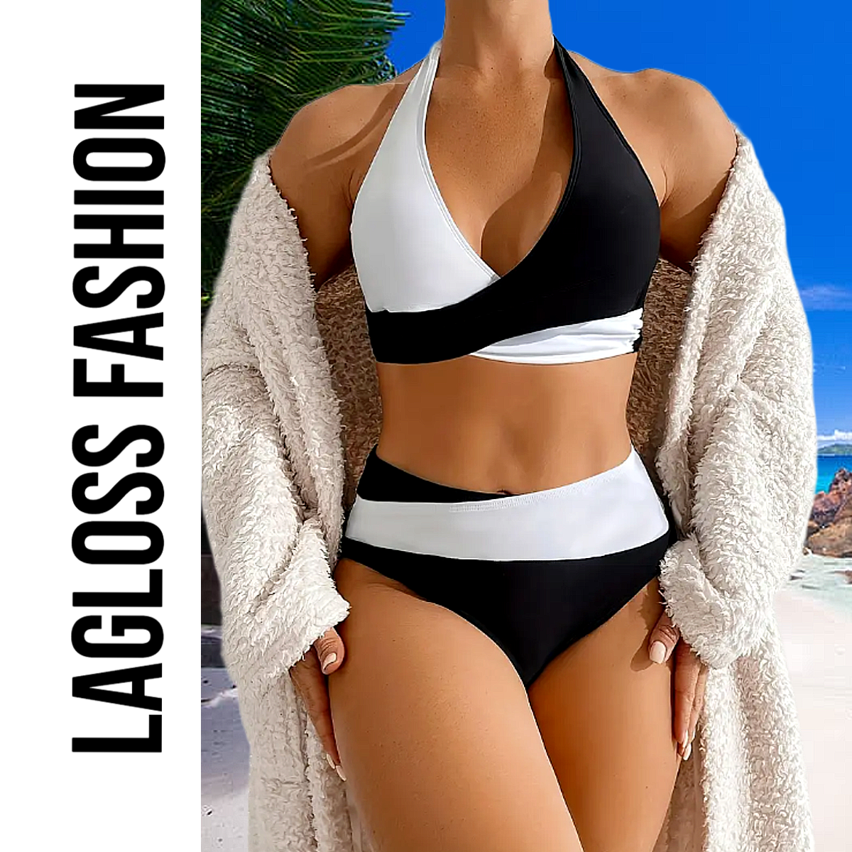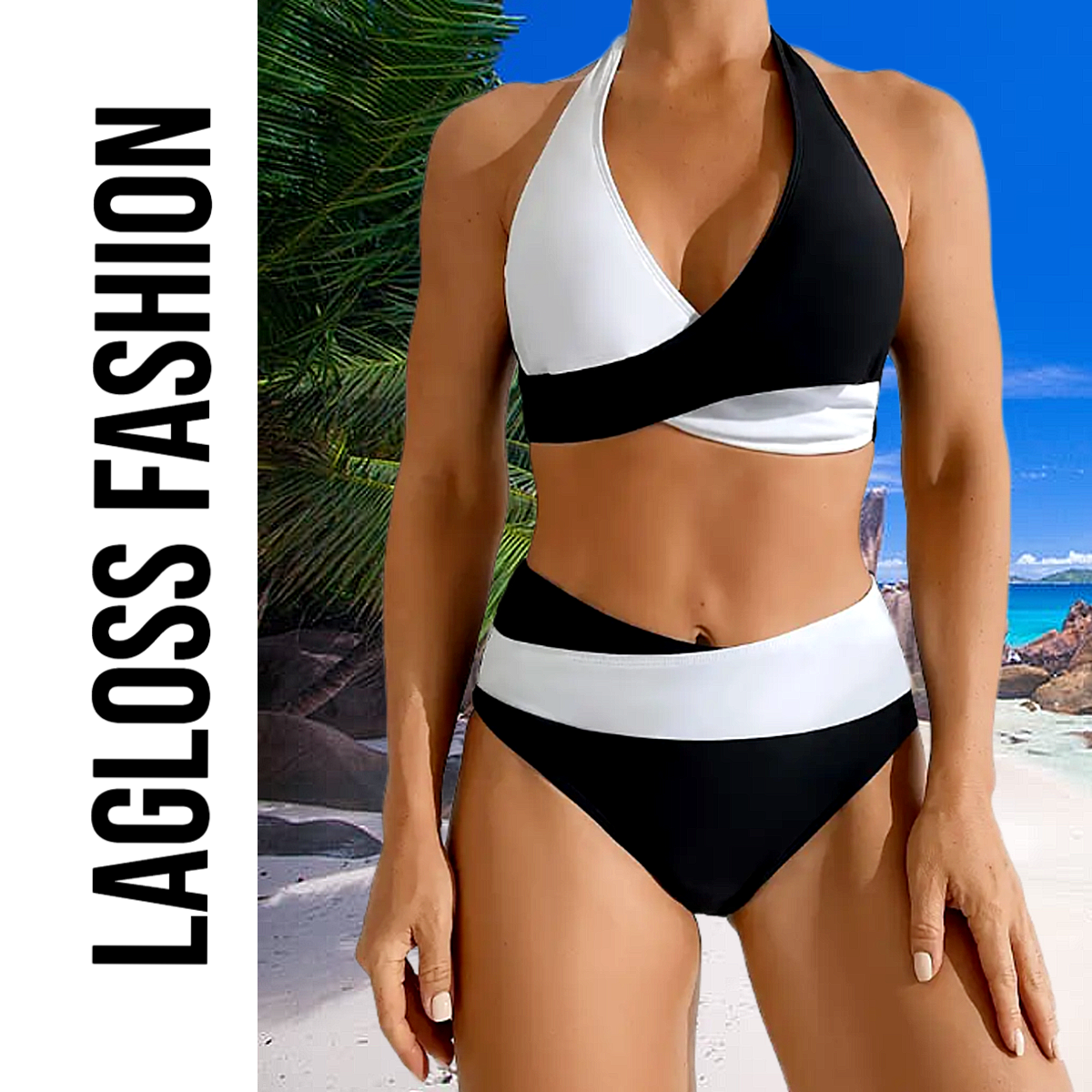 Ga deze zomer voor een tijdloze, elegante look met de LaGloss® Zwart-Witte Bikini Set – een modieuze en comfortabele tweedelige bikini voor dames met een klassiek kleurenpalet en moderne snit. Deze bikini combineert eenvoud met stijl dankzij het minimalistisch zwart-witte ontwerp en het hoog uitgesneden broekje, dat uw silhouet prachtig accentueert.