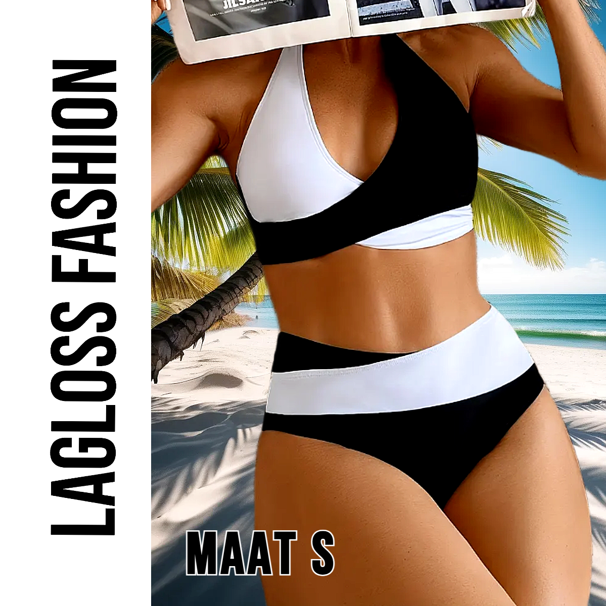LaGloss® Stijlvolle Bikini Set Dames – Zwart Wit Design – Tweedelig & Hoog Gesneden – Maat S