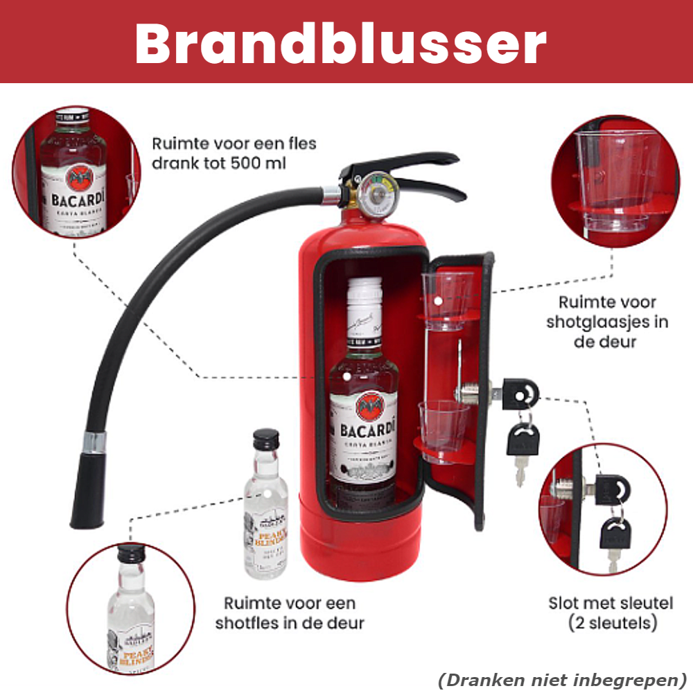 Allernieuwste.nl® Unieke Rode Brandblusser Design Dranken Opbergdoos Bar-set voor Drankflessen - Gift Set Cadeau Idee kado voor mannen