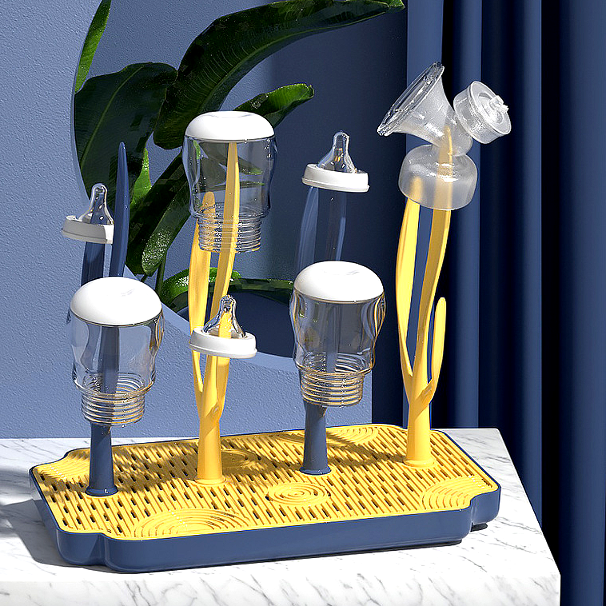 Allernieuwste.nl® Universeel Baby Fles Droogrek - 12 Plekken - Druiprek Blauw Geel 30x18.5x27cm