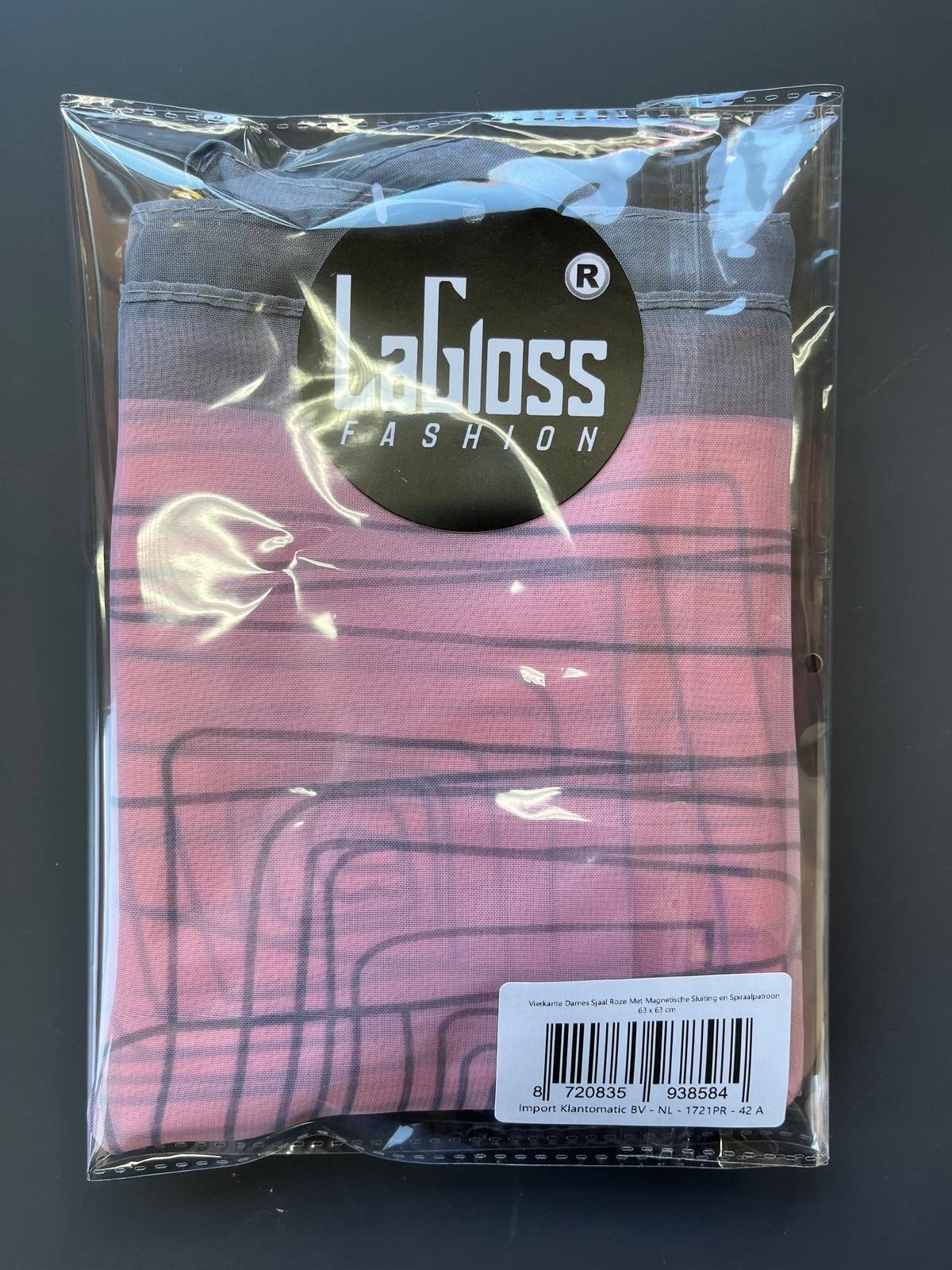 LaGloss® Vierkante Dames Sjaal Colsjaal Roze Met Magnetische Sluiting en Spiraalpatroon - Zomer/Lente/Herfst/Winter – Elegant – Praktisch – 63 x 63 cm