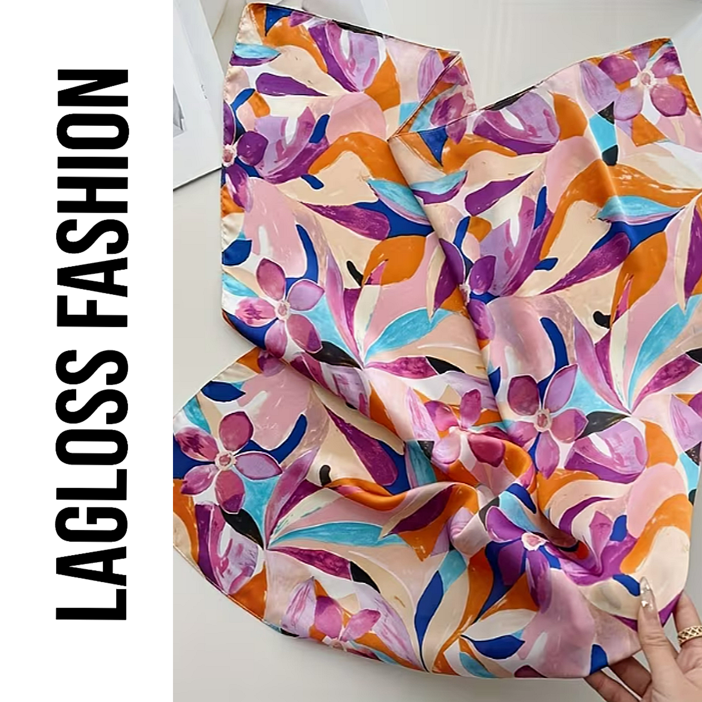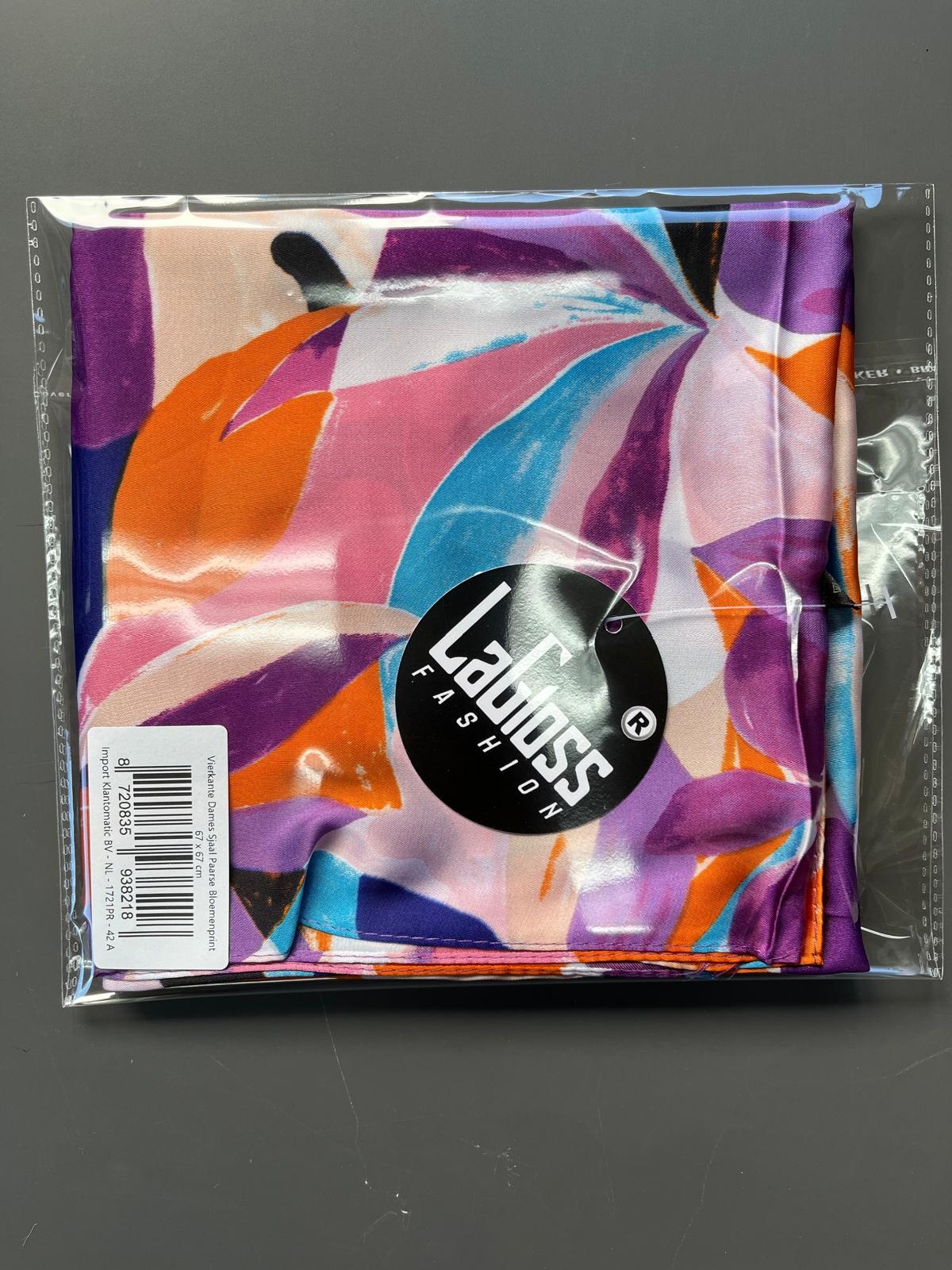 LaGloss® Vierkante Dames Sjaal Paarse Bloemenprint – Kleurrijk – Festival – Zomer/Lente – 67 x 67 cm