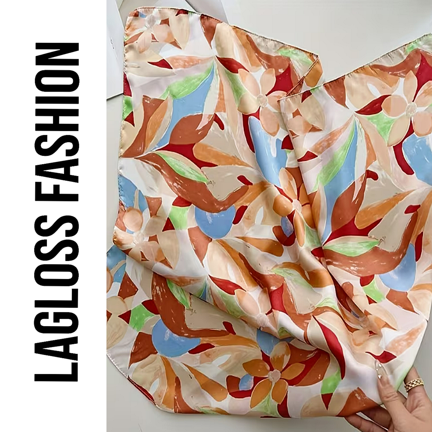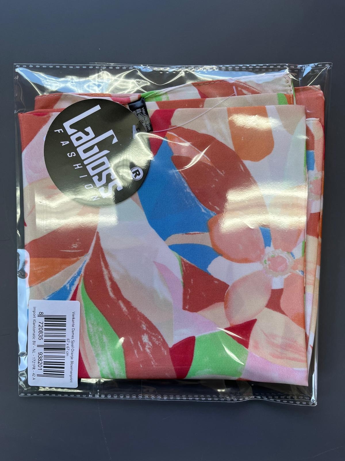 LaGloss® Vierkante Dames Sjaal Oranje Bloemenprint – Kleurrijk – Festival – Zomer/Lente – 67 x 67 cm