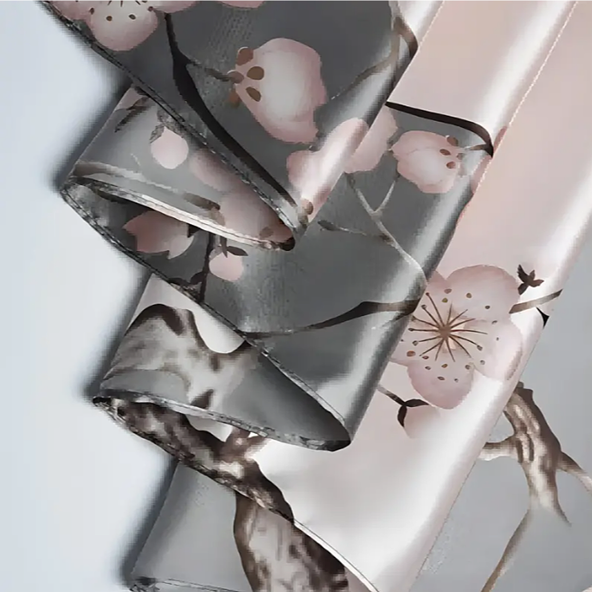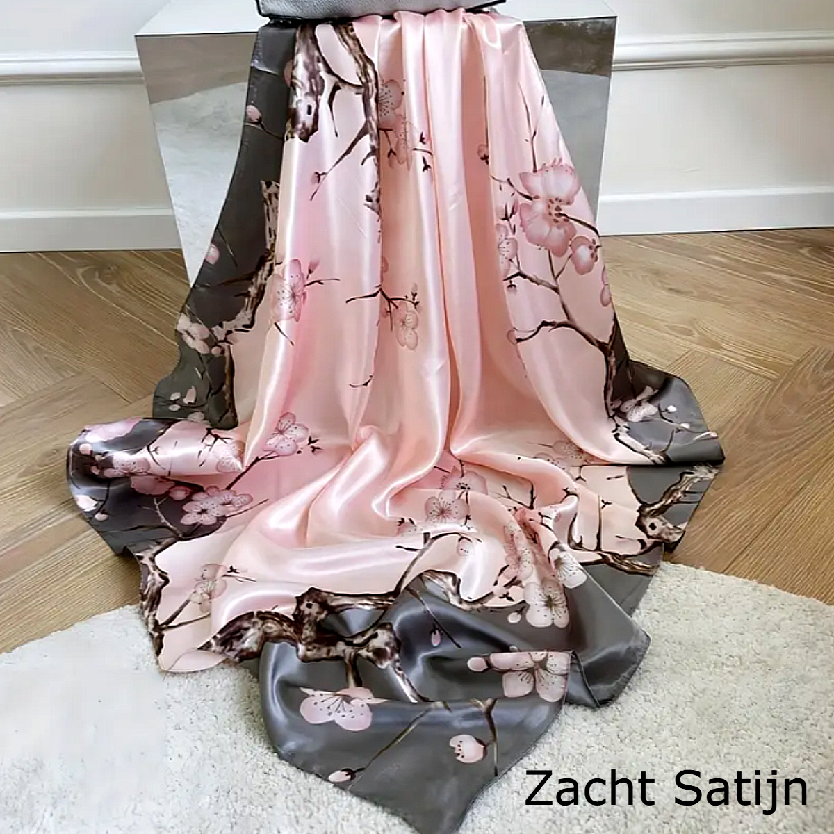 De sjaal valt op door de combinatie van een verfijnde roze en grijze bloemenprint met een zijdelook, wat een chique en moderne uitstraling geeft. - Royale Afmetingen: