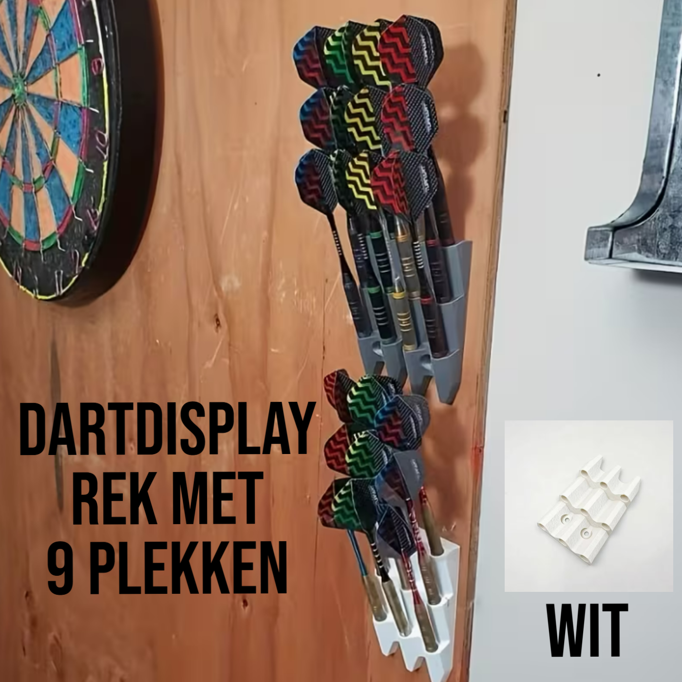 Wandmontage Dart Displayrek voor 9 Darts – Ruimtebesparende Dartpijlen Houder – Wit – 5 x 10,5cm