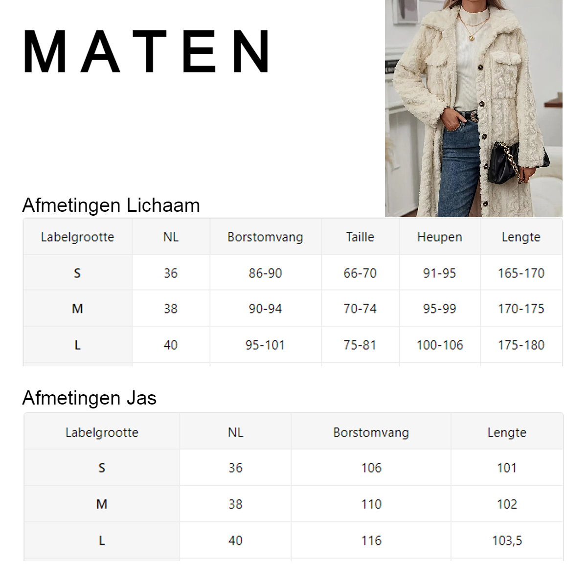 - Maat M: Perfect voor dames die een stijlvolle jas zoeken die goed past.