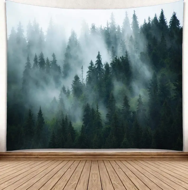 Het mistige bos ontwerp creëert een gevoel van kalmte en mysterie, perfect voor het toevoegen van een rustgevende ambiance aan je huis. Dit ontwerp is ideaal voor wie op zoek is naar een connectie met de natuur, zelfs binnenshuis. Het wandkleed past perfect in zowel moderne als traditionele interieurstijlen en kan een opvallend middelpunt zijn in je woonkamer, slaapkamer of kantoor.