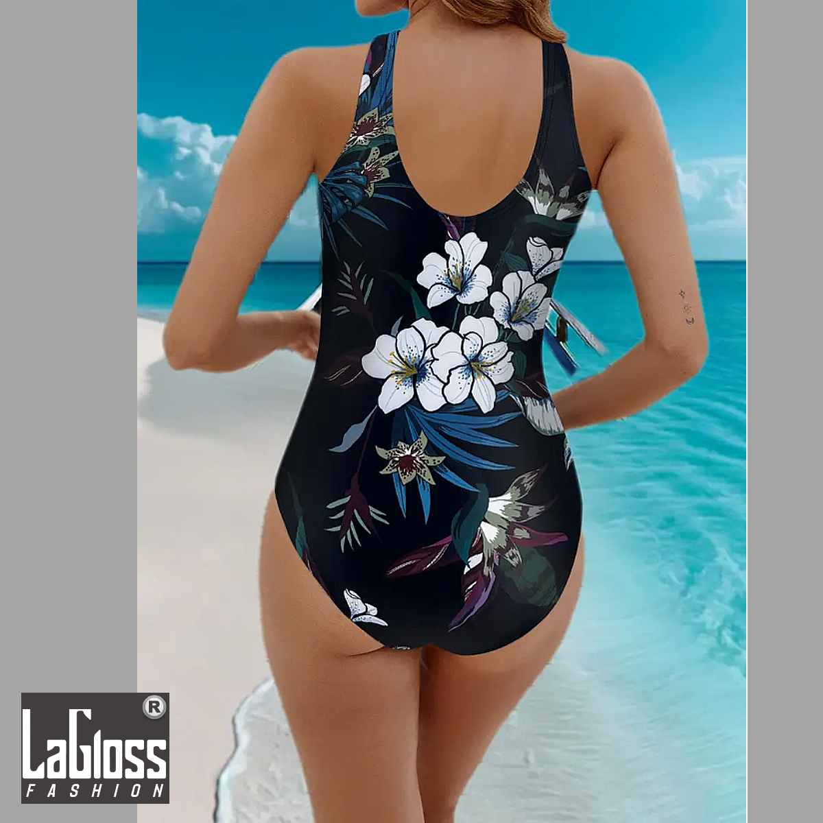Maak je zomercollectie compleet met dit modieuze en functionele LaGloss® badpak. De tropische bloemenprint op een zwarte basis geeft een frisse, moderne uitstraling waarmee je stijlvol van zon en water kunt genieten.